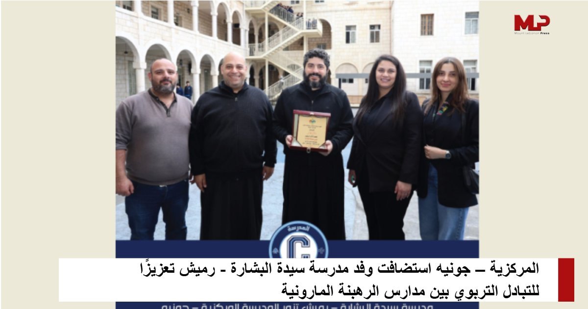 استضافت المدرسة المركزية – جونيه، وفدًا من مدرسة سيدة البشارة – رميش، في إطار تعزيز أواصر التعاون والتبادل التربوي بين مدارس الرهبانية اللبنانية المارونية، ضمّ طلابًا وأساتذة يتقدّمهم رئيس المدرسة الأب مارون فغالي.