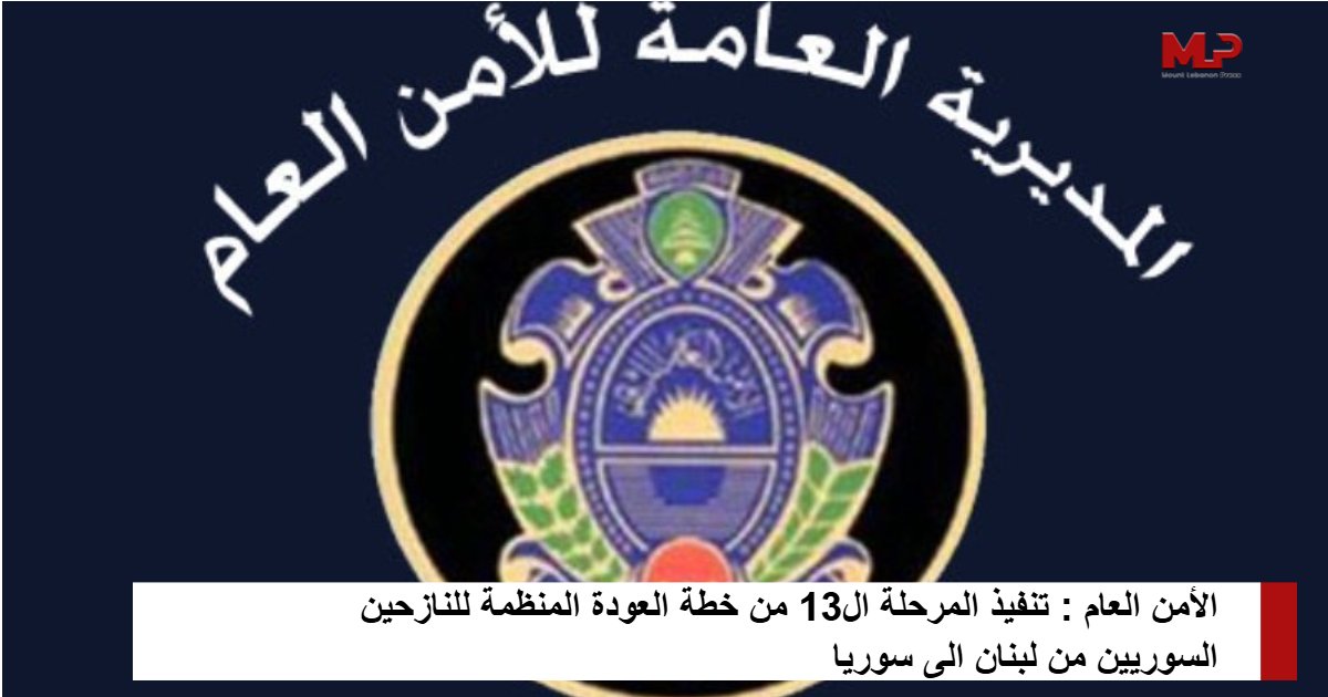 نظمت المديرية العامة للأمن العام صباح اليوم، المرحلة الثالثة عشرة من خطة الحكومة اللبنانية المتعلقة بالعودة المنظمة للنازحين السوريين من لبنان إلى سوريا ، بالتعاون مع منظمة UNHCR و IOM والصليب الأحمر اللبناني ومنظمات إنسانية، وذلك من نقطة التجمع في جامعة بيروت العربية – تعنايل بالبقاع عبر مركز الأمن العام الحدودي في المصنع، وبالتنسيق مع السلطات الأمنية في الجانب السوري.