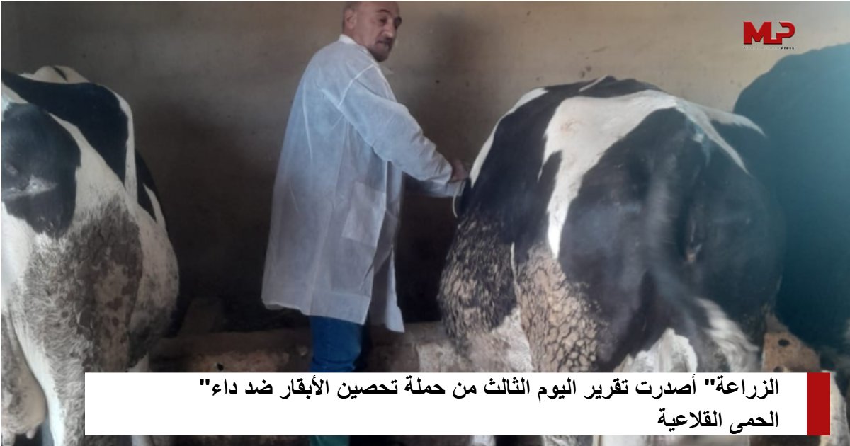 أفادت وزارة الزراعة في بيان، أنه “في إطار الخطة الوطنية التي تنفّذها لمكافحة داء الحمى القلاعية والحد من انتشاره، واصلت فرق دائرة الثروة الحيوانيةفي مختلف المصالح الإقليمية أعمال التحصين الميداني، مسجّلةً تقدّماً ملموساً في اليوم الثالث من الحملة بتاريخ 22 كانون الأول 2025”.