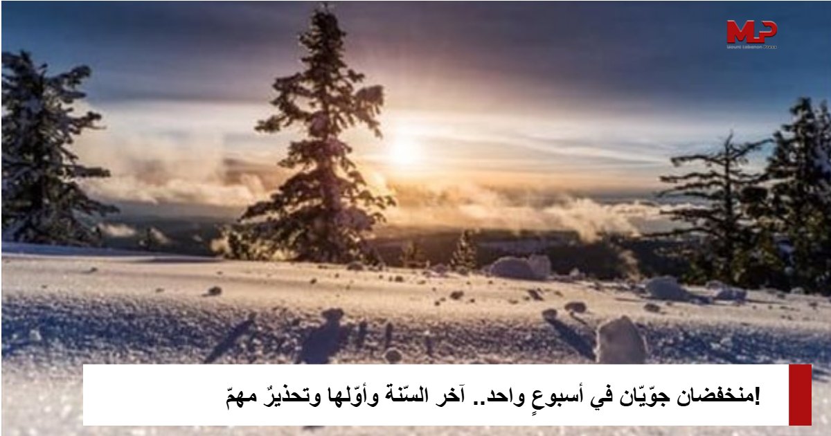 توقّعت دائرة التقديرات في مصلحة الأرصاد الجوية في المديرية العامة للطيران المدني، أن يؤثّر منخفض جوي مصدره البحر الأسود على لبنان والحوض الشرقي للمتوسّط يكون مصحوباً بكتل هوائية باردة، يؤدّي إلى انخفاض ملموس بدرجات الحرارة والتي تصبح دون معدلاتها الموسمية، مع تساقط أمطار غزيرة ورياح شديدة وعواصف رعدية وثلوج على ارتفاع ١٤٠٠ متر وما فوق، ينحسر تدريجياً ليل الاثنين.