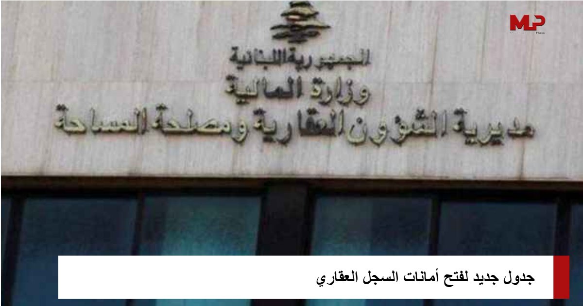 أعلنت المديرية العامة للشؤون العقارية، في بيان، “أن جميع أمانات السجل العقاري خارج جبل لبنان باسثناء أمانة الكورة سوف تفتح ابوابها للمواطنين ابتداء من 12-01 2026 كل أيام الاسبوع .