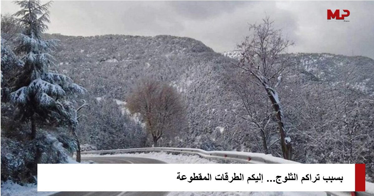 فادت غرفة التحكم المروري، عبر حسابها على منصة “إكس”، اليوم الثلاثاء، عن قطع عدد من الطرقات الجبلية في لبنان نتيجة تراكم الثلوج، ما أدى إلى تعطيل حركة المرور في عدد من المناطق.
