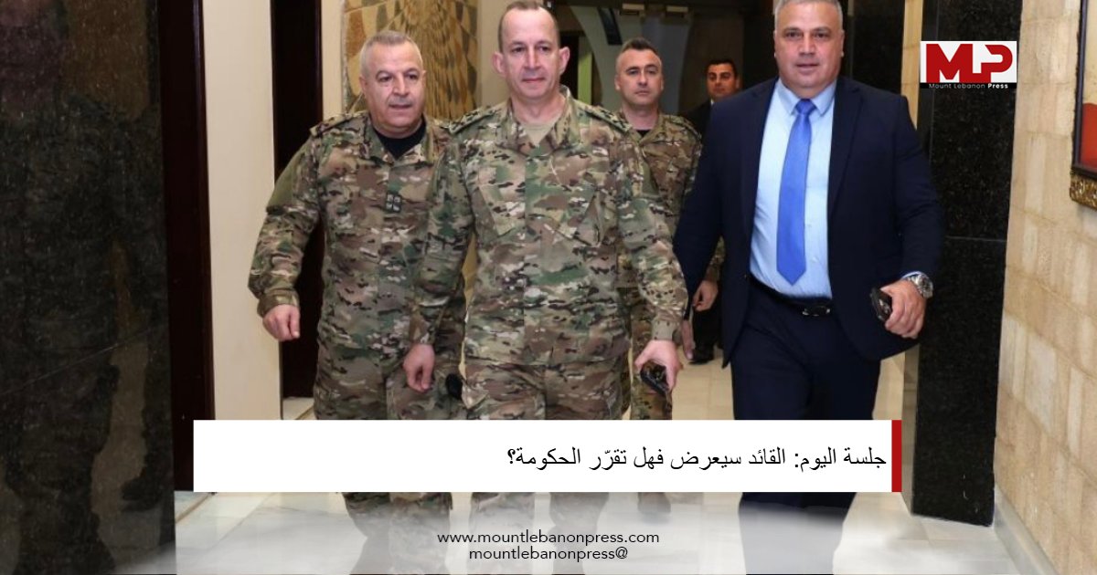 عند العاشرة صباحًا، يعقد مجلس الوزراء جلسة، البند الأول على جدول أعمالها “عرض قائد الجيش التقرير الشهري بشأن خطة حصر السلاح في كافة المناطق اللبنانية”.