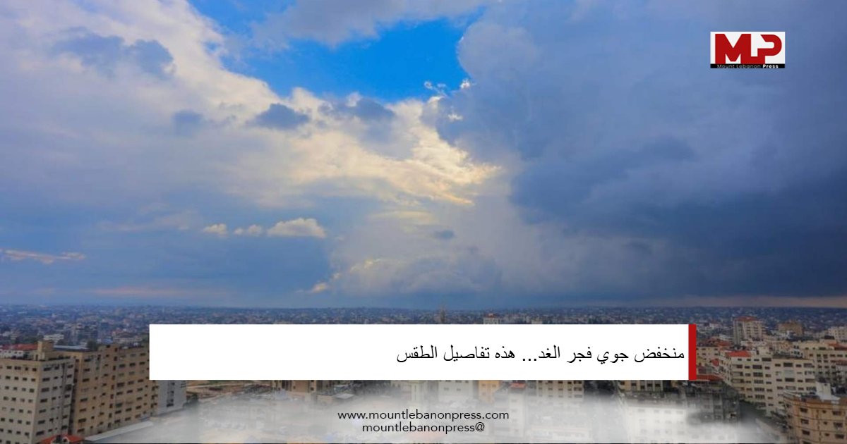 -السبت: ينكفئ المنخفض صباحا لكن يبقى الطقس متقلبا مع احتمال زخات مطر محلي غير شامل نهارا لتجدد ليلاً وتتساقط الثلوج على الجبال العالية ٢٢٠٠ متر والحرارة تتراوح بين ١٤ و١٨ ساحلا وبين ٣ و١٥ بقاعاً وبين ٦ و١١ على الـ١٠٠٠ متر فيما الرياح جنوبية غربية نشطة خاصة شمالا وجبلاً وسرعتها بين ٢٠ و٥٠ كم/س