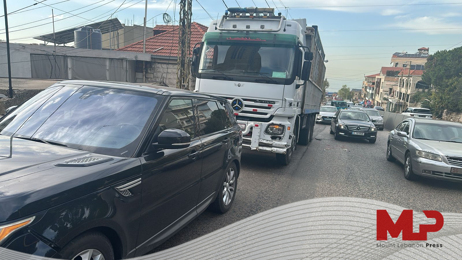 حادث سير بين شاحنة و3 سيارات على طريق الكحالة