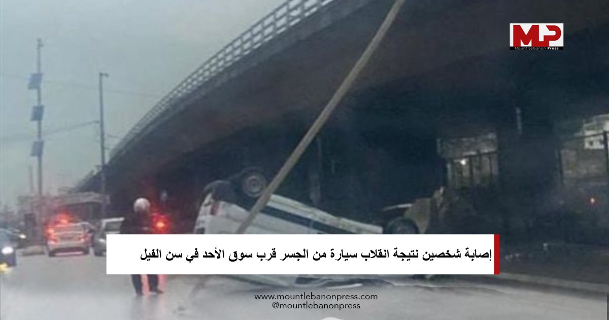 افادت اليازا عن إصابة شخصين نتيجة انقلاب سيارة من الجسر قرب سوق الأحد في سن الفيل.