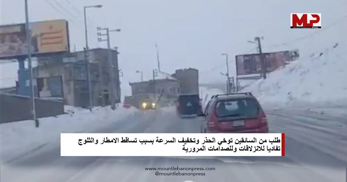 تطلب غرفة التحكم المروري من السائقين توخي الحذر وتخفيف السرعة بسبب تساقط الامطار والثلوج تفاديا للانزلاقات وللصدامات المرورية