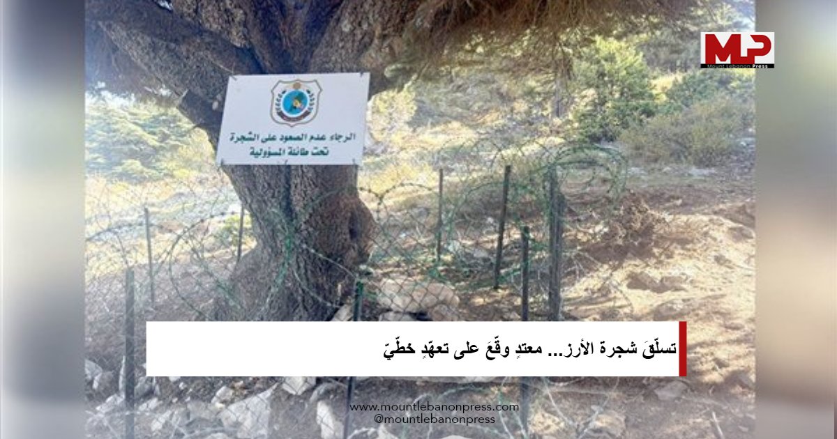 أعلنت وزارة الزراعة – مصلحة زراعة عكار، في بيان، أنه جرى اليوم توقيع تعهّد خطي من قبل أحد الأشخاص الذين خالفوا قرار الوزارة وتعدّوا على شجرة الأرز المحمية والمسيّجة من قبلها، وذلك بعد قيام مجموعة من الشبان بتسلّق الشجرة، على الرغم من وجود تعليمات واضحة تمنع الاقتراب منها أو تسلّقها.