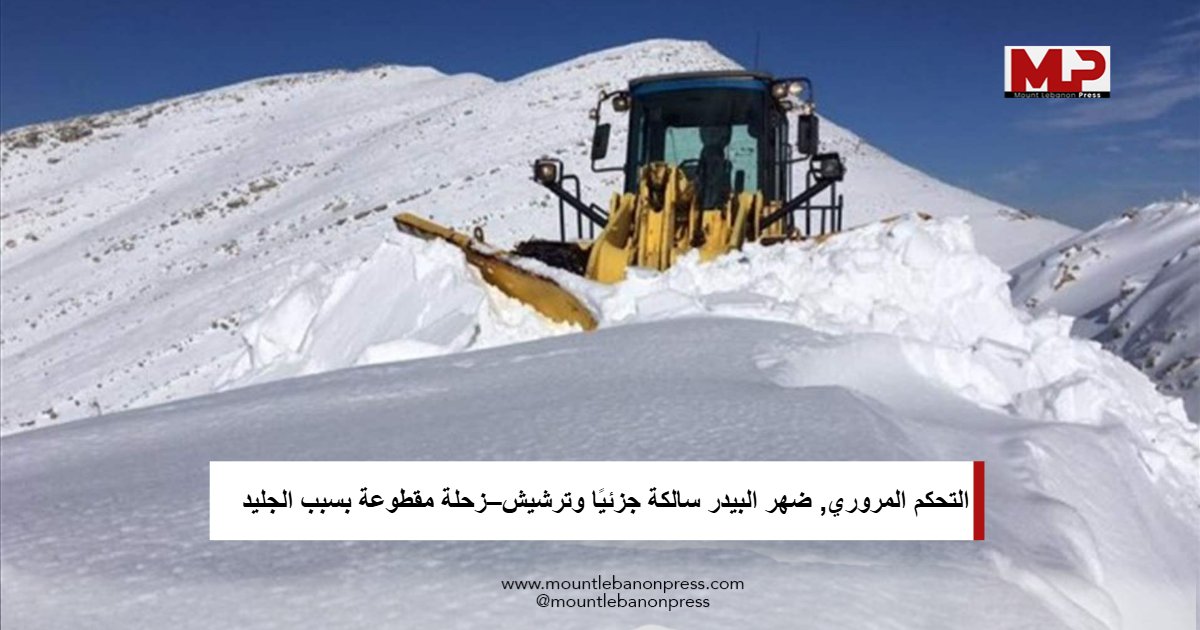 التحكم المروري: طريق ضهر البيدر سالكة حاليًّا أمام كلّ الآليات باستثناء الشاحنات أمّا طريق ترشيش – زحلة فمقطوعة أمام كلّ السيارات بسبب تكوّن طبقة من الجليد
