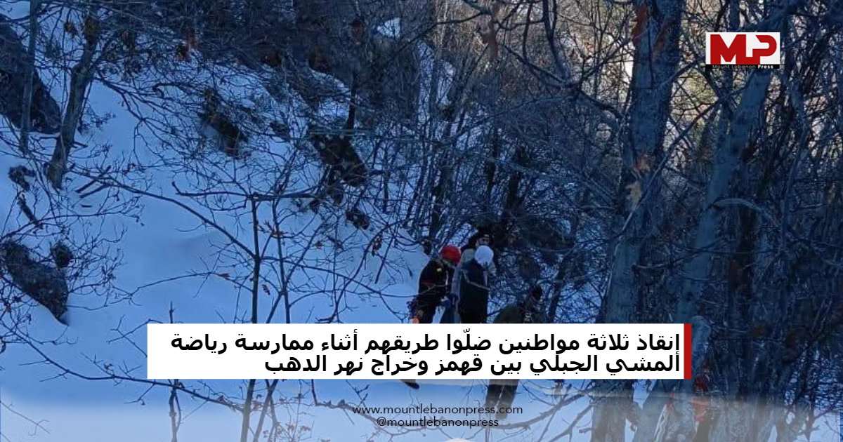 ضلّ ثلاثة مواطنين في العقد الثاني من العمر طريقهم أثناء ممارستهم رياضة المشي الجبلي (Hiking) في المنطقة الواقعة بين بلدة قهمز وخراج نهر الدهب – كسروان، وسط تضاريس جبلية وعرة وتكوّن طبقة من الجليد، فاتصلوا بغرفة عمليات المديرية العامة للدفاع المدني على الرقم ١٢٥ طلبًا للمساعدة.