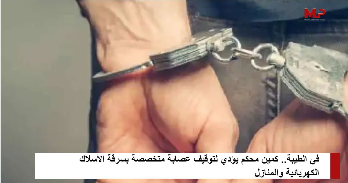 تمكنت قوة من استقصاء الجنوب، بالتعاون مع أهالي بلدة الطيبة وعنصر من أمن الدولة، من توقيف عصابة متخصصة بسرقة الأسلاك الكهربائية والمنازل والشاليهات بما في ذلك سرقة بطاريات ومحتويات أخرى ، وفق ما أفادت مندوبة “لبنان 24”.