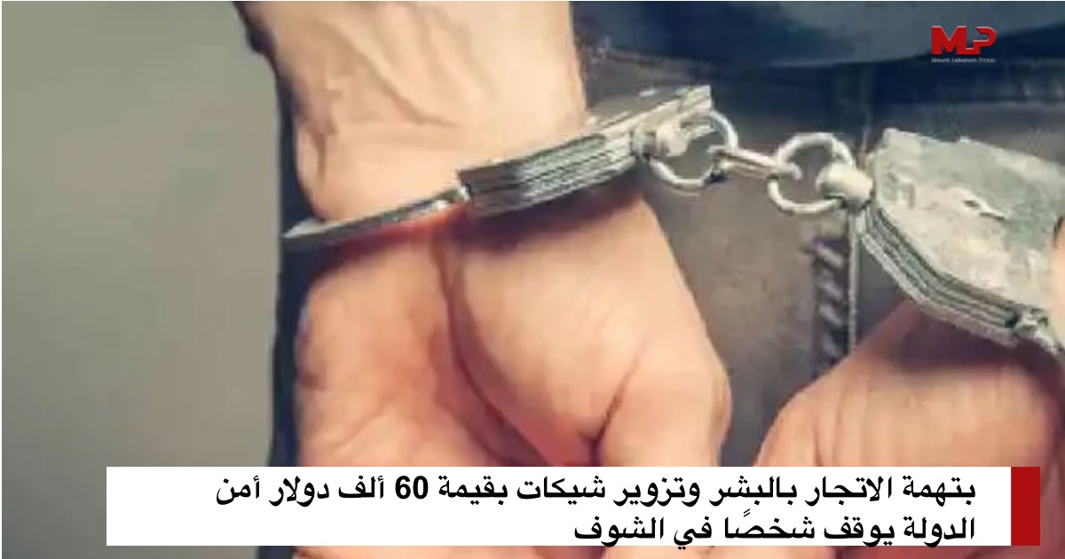 بتهمة الاتجار بالبشر وتزوير شيكات بقيمة 60 ألف دولار أمن الدولة يوقف شخصًا في الشوف