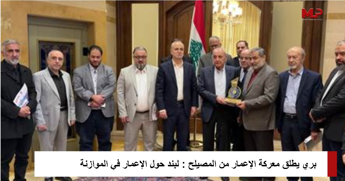 وفي حديثه عن إعادة الإعمار وصمود الجنوبيين، قال بري خلال لقائه وفداً من «اتحاد الإذاعات والتلفزيونات الإسلامية»، برئاسة وكيل الأمين العام للاتحاد الشيخ ناصر أخضر وأعضاء من الأمانة العامة للاتحاد: «أهم معركة وأهم حرب يخوضها اللبنانيون، وخاصة أبناء الجنوب، هي معركة الصمود والبقاء في الأرض، على الرغم من حجم القتل الذي يجري يومياً من قبل قوات الاحتلال الإسرائيلي وآلته الحربية».
