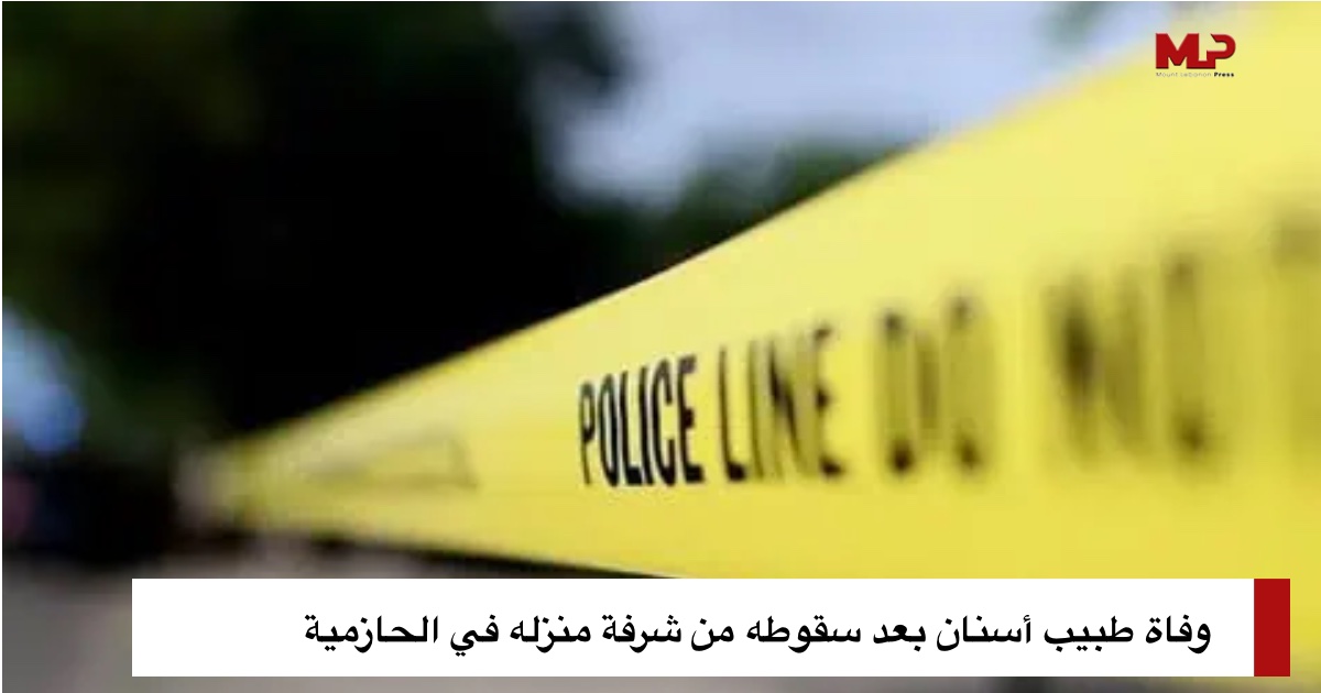 Homeوفاة طبيب أسنان بعد سقوطه من شرفة منزله في الحازمية Posted in حوادث وفاة طبيب أسنان بعد سقوطه من شرفة منزله في الحازمية on نوفمبر 5, 2025نوفمبر 5, 2025 تعرض طبيب الأسنان اوغيست البدوي لحادثة سقوط من شرفة منزله الواقع في الطابق الرابع في بلدة الحازمية ما أدى إلى وفاته على الفور. Side by Side Linked Images