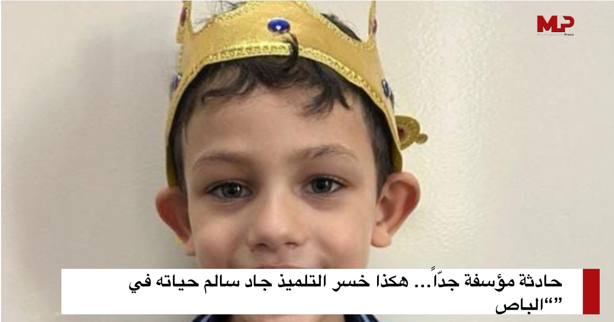 تُوفي الطفل جاد سالم، من مدرسة بهاء الدين الحريري في صيدا، بعدما عمد إلى إخراج رأسه من “الباص”، فاصطدم بشجرة.