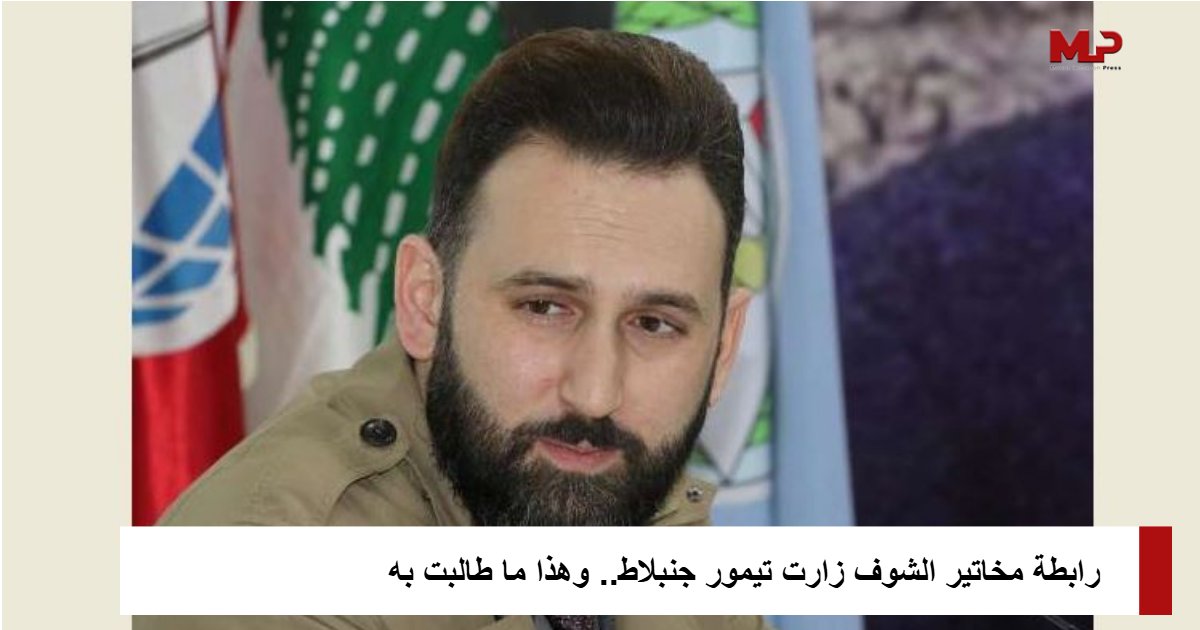 زار رئيس واعضاء رابطة مخاتير قضاء الشوف، النائب تيمور وليد جنبلاط في المختارة وتحدث رئيسها المختار نبيل عزام معرفاً عن الرابطة واعضائها ودورها في القضاء وأكد على السعي في تعزيز آواصر التعاون الذي يهدف إلى مصلحة وخير المواطن. كما طلب من النائب جنبلاط مساعدة الرابطة في تعزيز موقع المختار والعمل مع المعنيين ليصبح المختار المنتسب الى الرابطة مؤمنًا في الدرجة الأولى عند دخوله المستشفى.