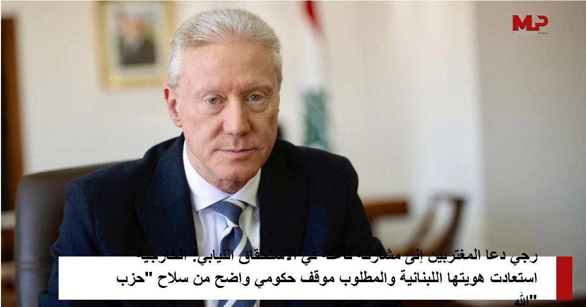 رجي دعا المغتربين إلى مشاركة فاعلة في الاستحقاق النيابي: الخارجية استعادت هويتها اللبنانية والمطلوب موقف حكومي واضح من سلاح “حزب الله”