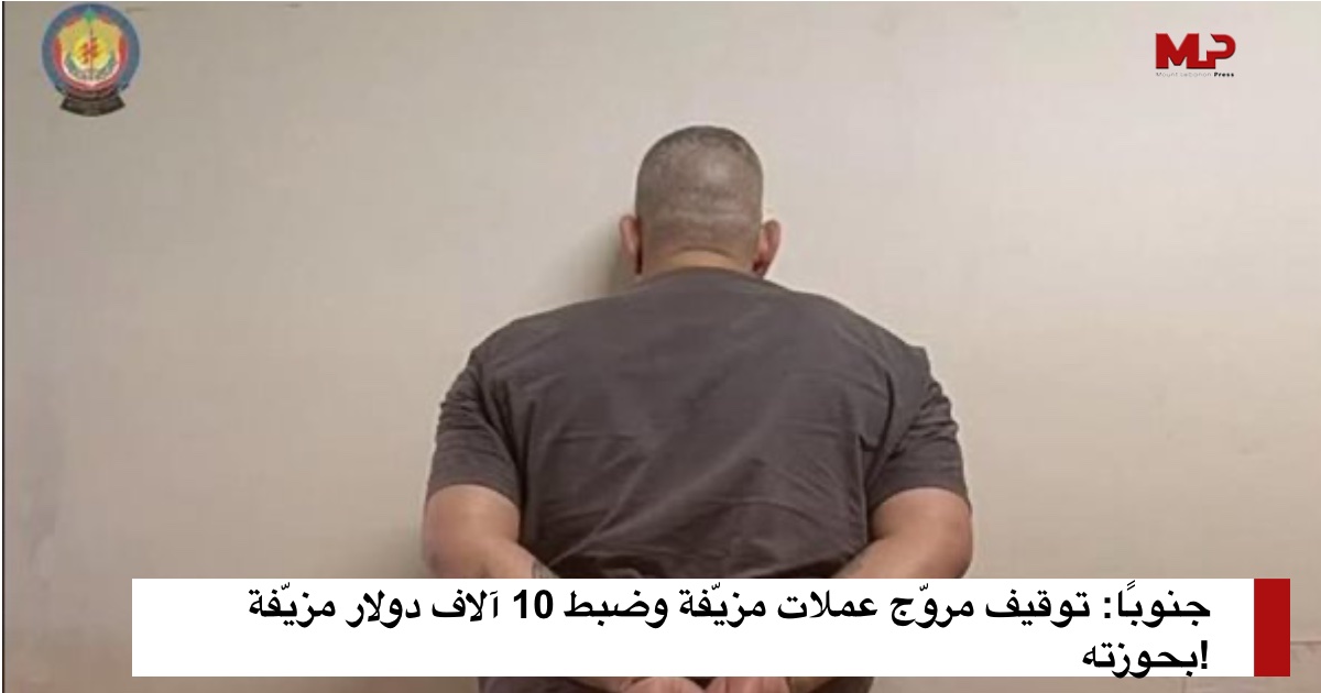 في إطار الجهود المتواصلة التي تبذلها المديرية العامة لأمن الدولة لمكافحة ترويج العملات المزيّفة وحماية الأمن الاقتصادي، أوقفت دورية من مديرية الجنوب الإقليمية، بتاريخ 23/11/2025، الفلسطيني (ن.ك.) بعد رصد نشاطه في ترويج كميات من العملة الأميركية المزيّفة من فئة المئة دولار.