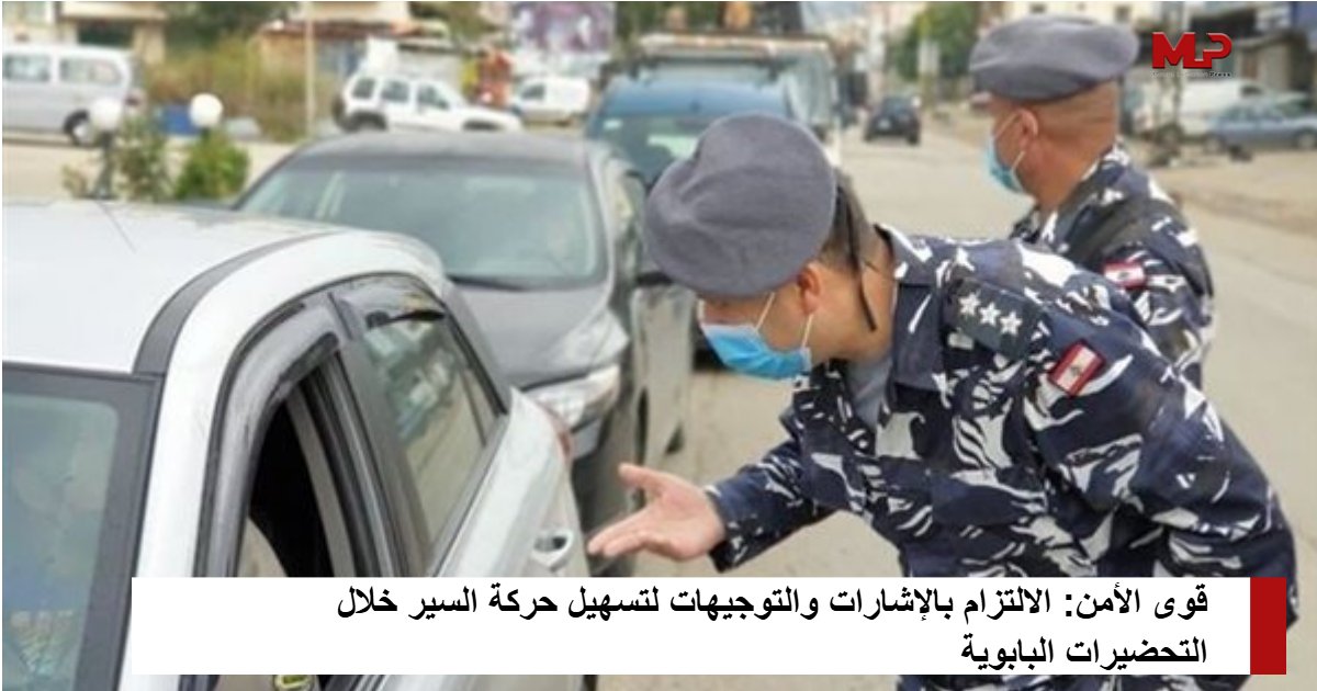 يُرجى من المواطنين أخذ العِلم، والتّقيّد بتوجيهات عناصر قوى الأمن الدّاخلي وإرشاداتهم، وبلافتات السّير التّوجيهيّة الموضوعة، تسهيلًا لحركة السّير ومنعًا للازدحام.