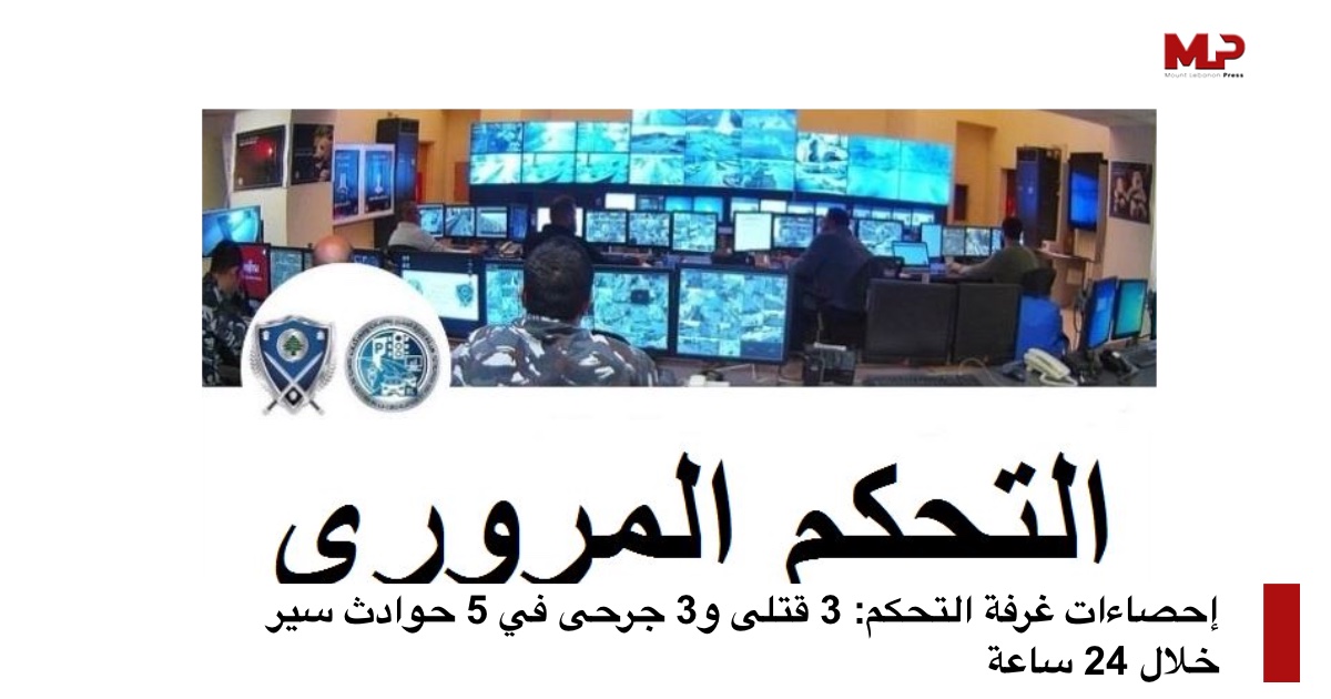 أفادت إحصاءات غرفة التحكم للحوادث بسقوط 3 قتلى و3 جرحى في 5 حوادث سير، تم التحقيق فيها خلال الـ 24 ساعة الماضية.