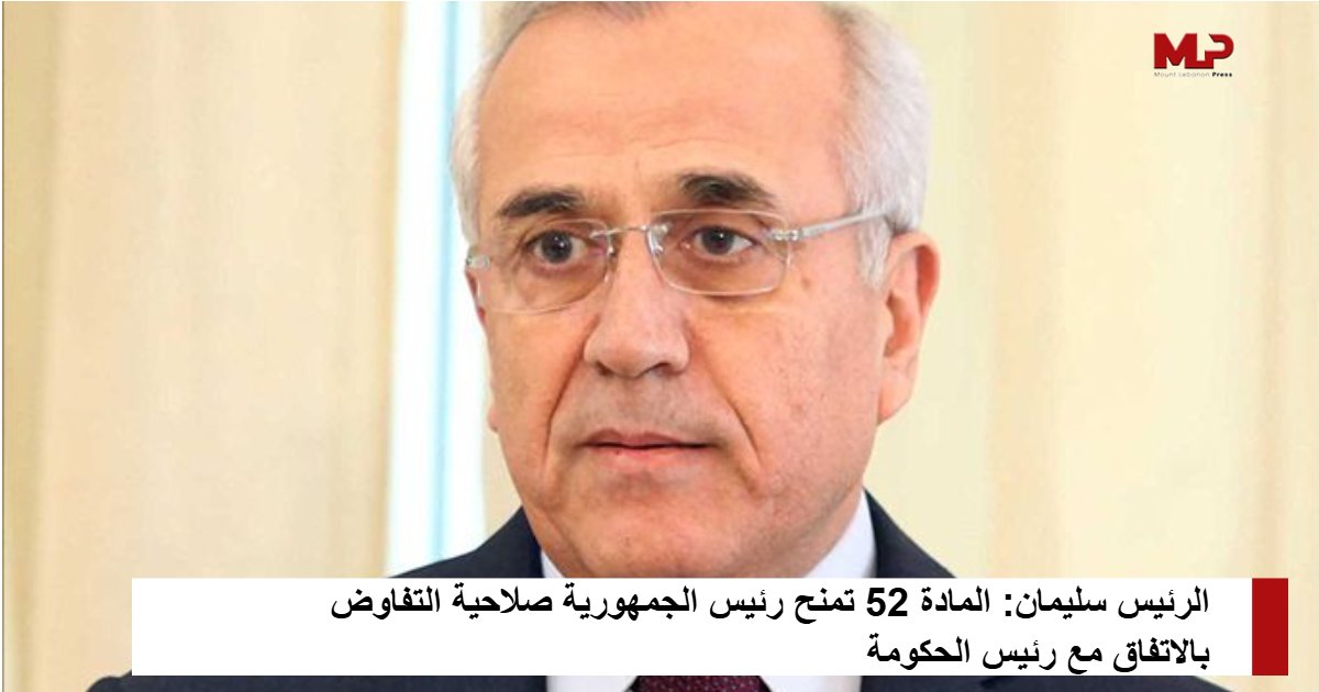 فالمادة ٥٢ من الدستور واضحة في هذا السياق، إذ تمنح رئيس الجمهورية صلاحية التفاوض بالاتفاق مع رئيس الحكومة، وتحدّد الأصول الواجب اتباعها في عرض نتائج التفاوض وإبرامها أمام مجلس الوزراء ومن ثمّ مجلس النواب”.