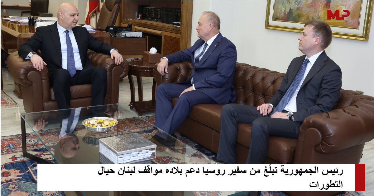 نقل سفير روسيا الكسندر روداكوف إلى رئيس الجمهورية العماد جوزاف عون، دعم بلاده “لمواقف لبنان حيال التطورات الأخيرة، ولا سيما موضوع التفاوض عبر لجنة “الميكانيزم”.