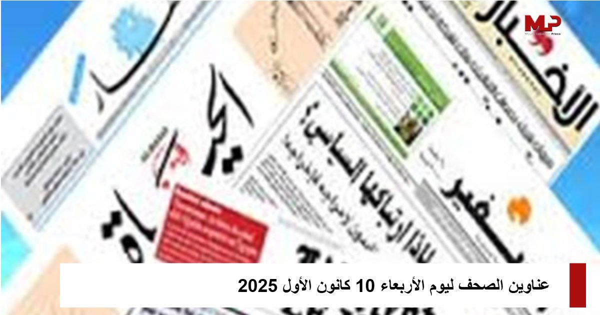 عناوين الصحف ليوم الأربعاء 10 كانون الأول 2025