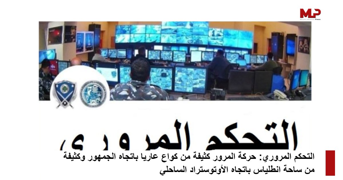 التحكم المروري: حركة المرور كثيفة من كواع عاريا باتجاه الجمهور وكثيفة من ساحة انطلياس باتجاه الأوتوستراد الساحلي