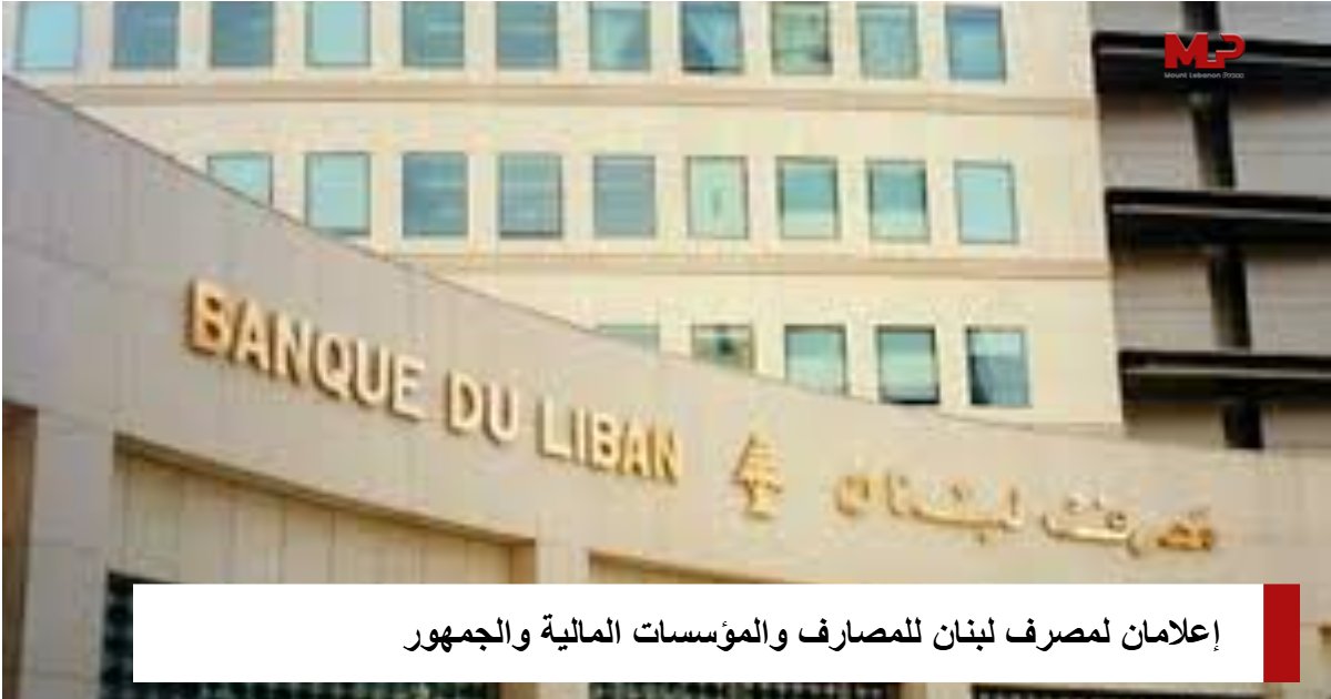صدر عن مصرف لبنان تعميمان، جاء في الأول: يحيط مصرف لبنان الجمهور علمًا بأنه، ابتداءً من 2026-01-02، يمكن لأي شخص لديه استفسار أو شكوى أو مراجعة أن يتواصل حصراً مع مديرية الشؤون الخارجية على البريد الإلكتروني التالي: Bdlext@bdl.gov.lb أو على الرقم: 01/750000 – مقسم داخلي 5000، على أن تقوم مديرية الشؤون الخارجية بمتابعة هذه المواضيع ودراستها مع الوحدات الإدارية والهيئات المعنية.