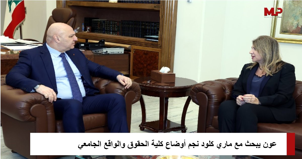 عرض رئيس الجمهورية جوزاف عون مع عميدة كلية الحقوق والعلوم السياسية في جامعة القديس يوسف، الوزيرة السابقة ماري كلود نجم، أوضاع الكلية والواقع الجامعي في لبنان، وذلك خلال لقاء تناول التحديات التي يواجهها التعليم العالي وسبل دعمه وتعزيز استمراريته.